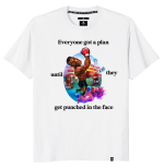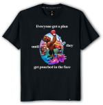 The design plays off the famous boxing quote associated with Mike Tyson: “Everybody has a plan until they get punched in the mouth.” The message reflects a real-world truth—plans are important, but true strength is shown when you adapt under pressure.